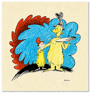 These rare 60th Anniversary works highlight Dr. Seuss’s relevancy to our everyday lives. They are a powerful reminder of the building blocks essential to a life well-lived. And, in iconic Seussian style, these artworks are playful yet fundamental presenting a mixture of serious fun and poignant moments. Dr. Seuss’s rough pencil and ink concept drawings started it all.