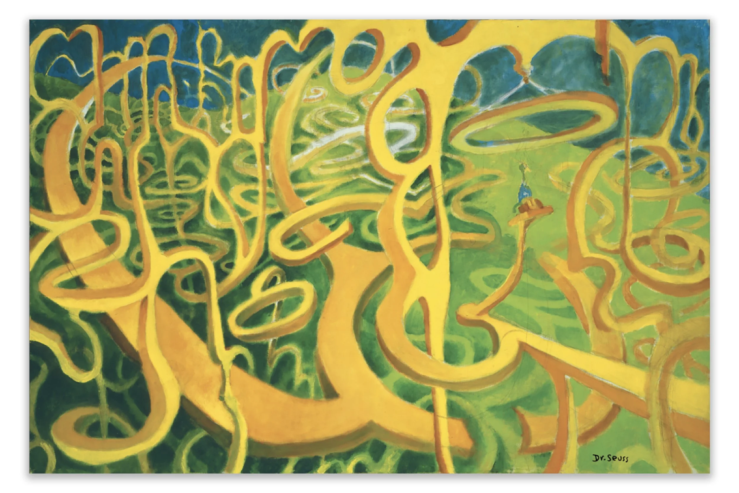 “It’s unclear if Ted Geisel (aka Dr. Seuss) left these sketchy pencil marks because the painting was never completed, or if he understood that by leaving a trace of his process we would be able to “see” the creative journey along with its many twists and turns.”