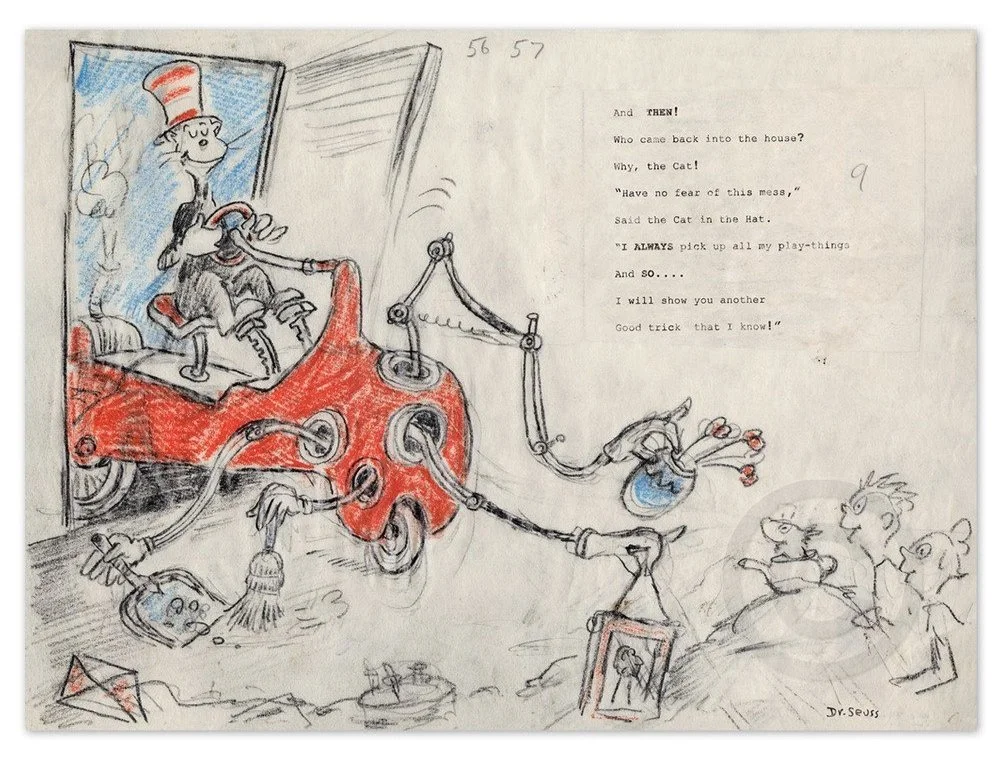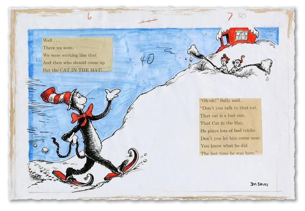 The Cat in the Hat was released in 1957 with the original jacket claiming “Many children will discover for the first time that they don’t need to be read to any more.” They were going to do the unthinkable, and in so doing, Ted would do the same.